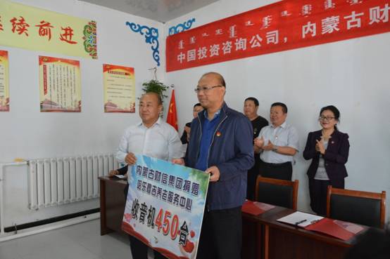高迎明書記代表內(nèi)蒙古財(cái)信集團(tuán)黨委向哈樂穆吉牧區(qū)養(yǎng)老服務(wù)中心贈送了多功能收音機(jī),并深入老牧民家中進(jìn)行了探望慰問。他表示:一方面要向牧區(qū)養(yǎng)老服務(wù)中心的老黨員學(xué)習(xí),學(xué)習(xí)老黨員不忘初心,永葆黨員革命本色光榮傳統(tǒng),向老黨員們致以崇高敬意。另一方面為該中心的老黨員們、老同志們開展一次獻(xiàn)愛心活動,向老人們傳遞愛心,獻(xiàn)上一份微薄的力量。聶敏董事長代表中國投資咨詢公司黨委慰問了哈樂穆吉牧區(qū)養(yǎng)老服務(wù)中心的老黨員,并與該中心簽訂“愛心采購”協(xié)議。
