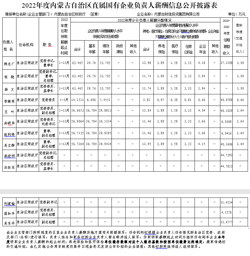 2022年度內(nèi)蒙古自治區(qū)直屬?lài)?guó)有企業(yè)負(fù)責(zé)人薪酬信息公開(kāi)披露表